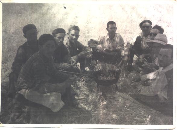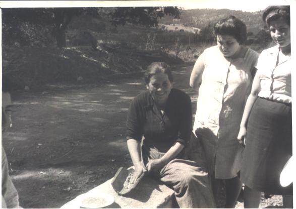 Angelillo), haciendo guisao de trigo, pelándolo en