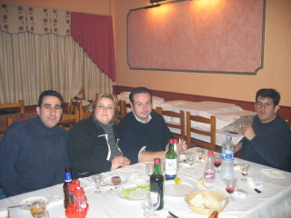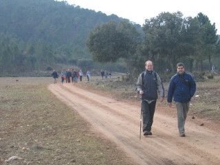 Opción B: Y una segunda, de cuestas más briosas y algo más larga: unos 17 kilómetros. Hasta el Batán del Puerto, el mismo recorrido que la opción A. Desde el Batán se va a recorrer íntegro el sendero PR AB-33, por el que se sube a Las Mesas (333 metros de desnivel) y se llega hasta Las Mohedas. Comeremos, está claro, todos juntos en el Restaurante La Atalaya, en el que por 12 euros, Pedro y Desiderio nos ofrecen el siguiente menú: De entrantes, forro, jamón y queso. De primero, judías pintas. De segundo, pollo al horno. Postre, café, vino, cervezas, refrescos, ...