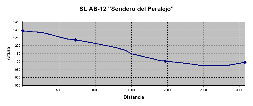Este sendero parte de la pista forestal por la que transcurre el PR AB-30 “De Los Catalmerejos al Cortijo de Tortas”, y va a unirlo con el camino histórico de Albacete, el PR AB-28 “Paterna del Madera - Los Catalmerejos”, en la aldea de Casa Nueva, donde finaliza. De la pista surge, en dirección sureste, descendiendo por una senda clara; dejando el barranco del arroyo del Peralejo a nuestra derecha. Enseguida las trazas cubiertas de maleza, se convierten en un camino claro. A la derecha, junto al camino, observamos unas ruinas y los restos de una alberca. Al poco viene por la izquierda otro barranco, que se une al que traemos y ensancha el valle. Cuando llevamos 730 metros, llegamos a las ruinas del Peralejo, preciosa aldea hoy abandonada.