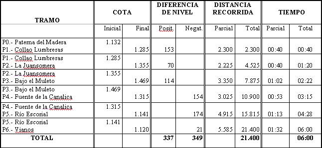 Desde la Plaza Mayor de Paterna del Madera, es preciso subir hacia la carretera por la calle del Príncipe, para seguir hacia la izquierda en dirección hacia el este. Por la carretera es preciso continuar algo menos de kilómetro y medio, hasta llegar a la Fuente del Quebrao, junto a la que sale una senda por la derecha de la carretera. La senda va a ascender durante casi un kilómetro hasta situarnos, por el Collao Lumbreras, en la cuerda de la Atalaya. Si siguiéramos hacia la derecha, por la cuerda, llegaríamos a la Atalaya, sobre Paterna del Madera. Para seguir nuestro camino, hemos de descender por la otra vertiente, hasta unirse con el camino del calaire y continuar juntos hasta cruzar el río de las Acequias sobre un carril. Desde allí sigue la senda hasta ascender a la Juansomera, en casi un kilómetro.