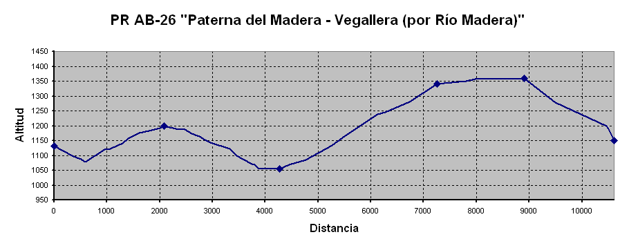 Desde aquí ya divisamos en el valle, la Vegallera, a donde llegaremos en poco menos de dos kilómetros de descenso, uniéndose este sendero -casi a las puertas de la Vegallera- con el PR AB-25, que también une las localidades de Paterna del Madera y la Vegallera, pero pasando no por Río Madera, sino por el Batán del Puerto. En nuestro camino, que no tiene dificultad alguna, también cuenta con una referencia importante, ya que desde Río Madera podemos seguir las líneas del tendido eléctrico que nos conducirán hasta la Vegallera. |